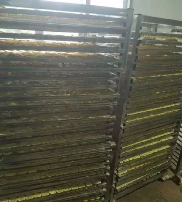 4、將風(fēng)干一天的檸檬片轉(zhuǎn)移至空氣能檸檬烘干房內(nèi),設(shè)置烘干機(jī)溫度為低溫40-50℃范圍,檸檬片的水分在低溫干燥的過程中緩慢蒸發(fā)并排出,烘干過程約15小時。