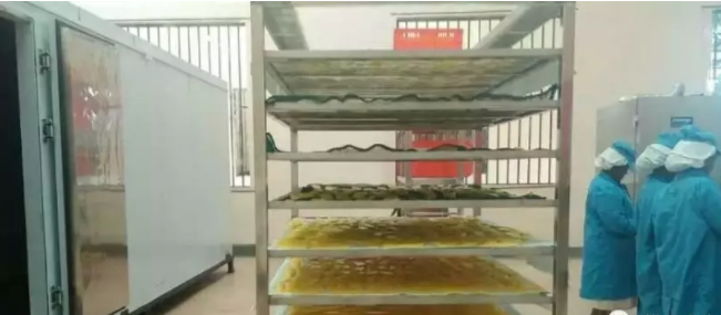 芒果烘干前期需要經(jīng)過清洗,去皮,切片,烘干,抽真空包裝幾個程序,今天我們注意介紹烘干過程的溫濕度控制技巧,芒果片烘干的量一般比較大,兩臺12P主機(jī)構(gòu)成的烘干系統(tǒng),每批次可以處理2.5噸的新鮮芒果片,耗時30小時完成一批次干燥,系統(tǒng)時間分為5段完成,第一段55度,升溫,3小時,第二段60度,開始排濕,第三段62度,連續(xù)排濕,第四段58度,開始降溫排濕,最后一段55度,排濕鞏固。