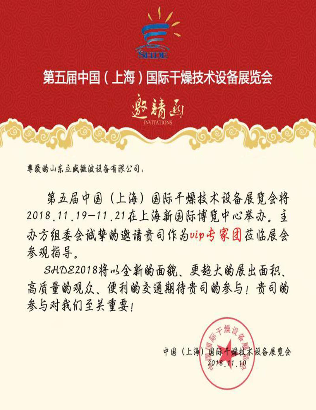 2018年11月19-21日,第五界中國(上海)國際干燥技術(shù)設(shè)備展覽會在上海新國際博覽中心隆重舉行。國內(nèi)外眾多廠商和相關(guān)行業(yè)協(xié)會300多家參與其中,囊括了機(jī)械、化工、電子、中草藥、種植業(yè)、農(nóng)林漁牧等。受展會組委會的熱忱邀請,山東立威微波設(shè)備有限公司派專家出席了此次展會。對展會進(jìn)行全程觀摩、指導(dǎo),同時攜帶部分先進(jìn)的設(shè)備樣機(jī)參與其中。
