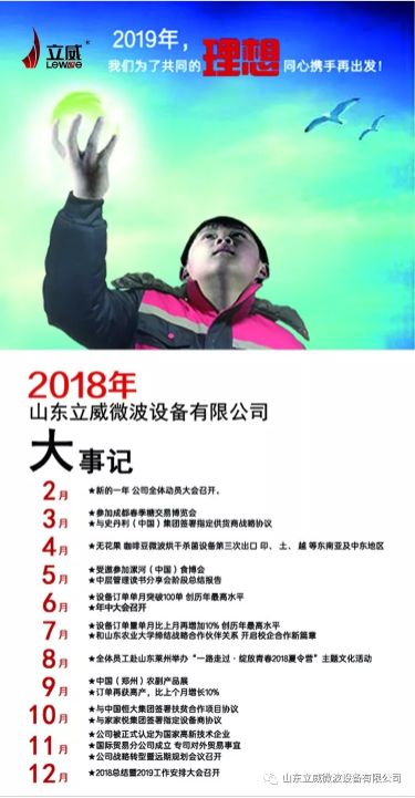 2018年的腳步已經(jīng)漸行漸遠,伴隨著笑聲與汗水, 2019年翩然而至!新的一年里,山東立威微波設備有限公司也將開啟新的征程。